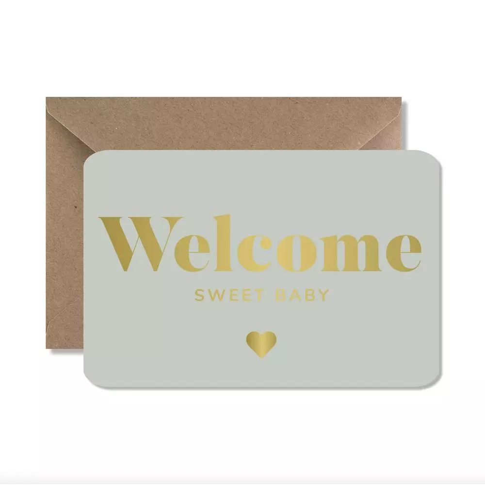 WELCOME SWEET BABY" GOLD GREETINGS CARD