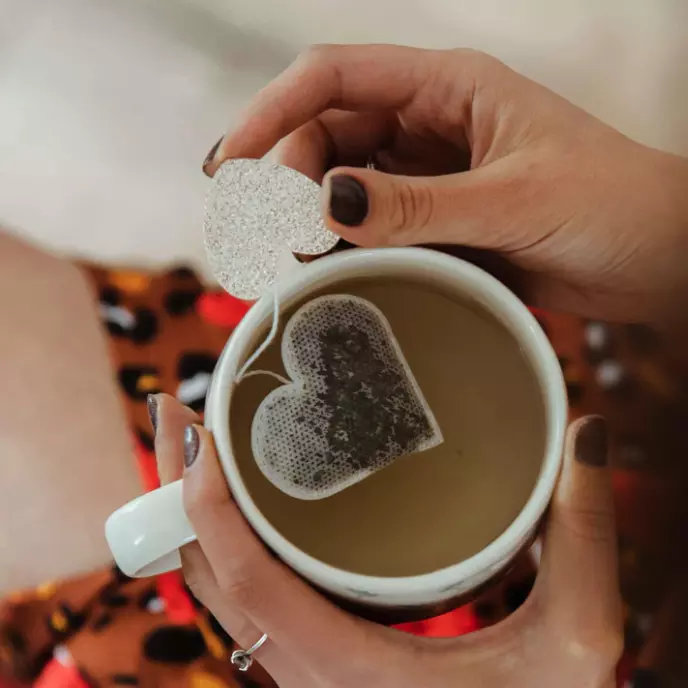 PACK OF 5 GOLDEN HEART SHAPED TEA BAGS: ROOIBOS CINNAMON ROLL