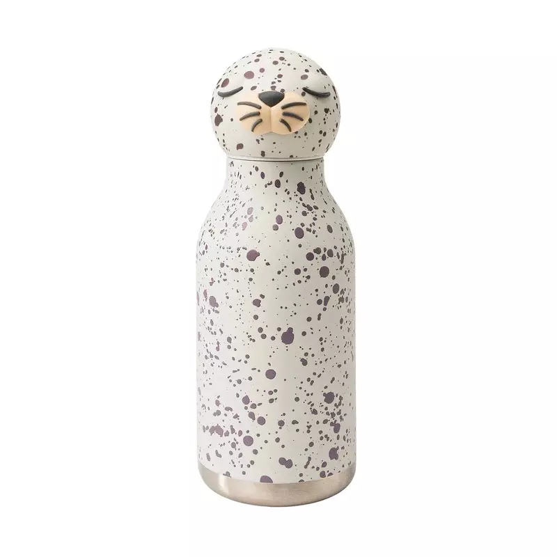 Meet your new best friend! This adorable water bottle helps you stay hydrated all day long and features a removable, collectible silicone character head that adds a playful touch to every sip. Thanks to its double-walled vacuum insulation, it keeps your drinks fresh for up to 24 hours, ideal for tackling any situation throughout the day. What's more, with its handy 47 cl size, it slips easily into your bag or cup holder, so you can take your best friend with you wherever you go.